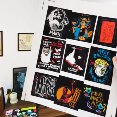 Na China maoísta, os cartazes de propaganda eram armas visuais. Produzidos aos milhões entre as décadas de 1950 e 1970, esses pôsteres transformavam slogans do Partido Comunista Chinês em imagens vibrantes, heroicas e inconfundíveis. 'Aumentar a vigilância, defender a pátria' era um chamado à mobilização popular — cada cidadão como sentinela da revolução. A estética era deliberada: cores saturadas, figuras altivas, céu vermelho ao fundo. Uma linguagem visual que atravessou fronteiras e entrou para o imaginário político mundial. Nesse adesivo, a referência vira recado portátil. Adesivo de vinil resistente. Cole onde quiser.