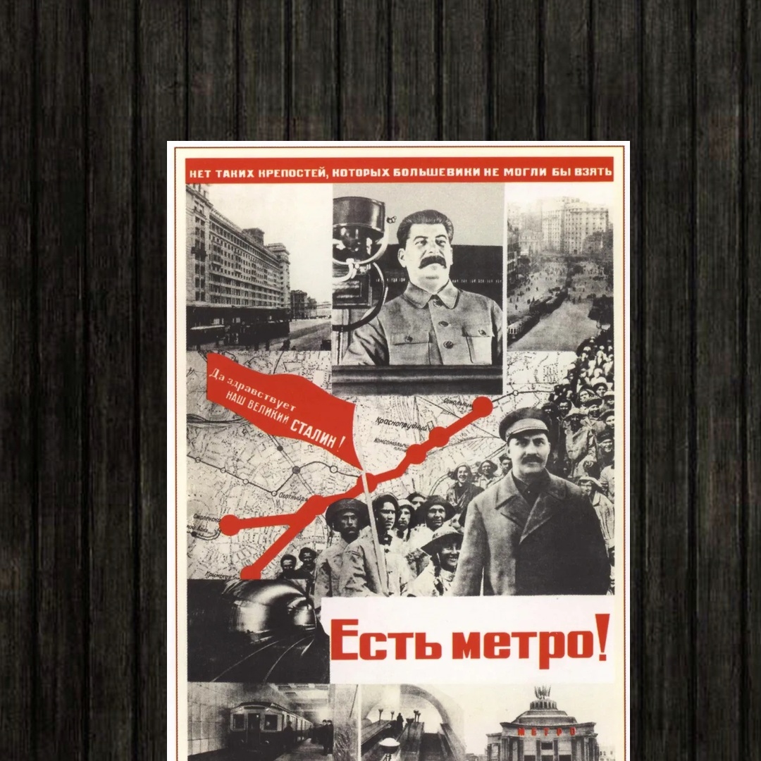 Em 15 de maio de 1935, a União Soviética inaugurou o Metrô de Moscou — uma das maiores obras de engenharia e arquitetura do século XX. As estações foram construídas com mármore, mosaicos e lustres de cristal, deliberadamente projetadas para que o trabalhador soviético pudesse experimentar a beleza que, no mundo burguês, era reservada às elites. 'Temos metrô' não era apenas um comunicado de transporte público: era uma declaração política de que o Estado operário era capaz de construir o extraordinário, o monumental, o belo — para todos. Mais de oito décadas depois, o Metrô de Moscou ainda é o mais movimentado do mundo fora da Ásia e um símbolo vivo do que o projeto socialista foi capaz de realizar. Nesse adesivo, a referência vira recado portátil. Adesivo de vinil resistente. Cole onde quiser.