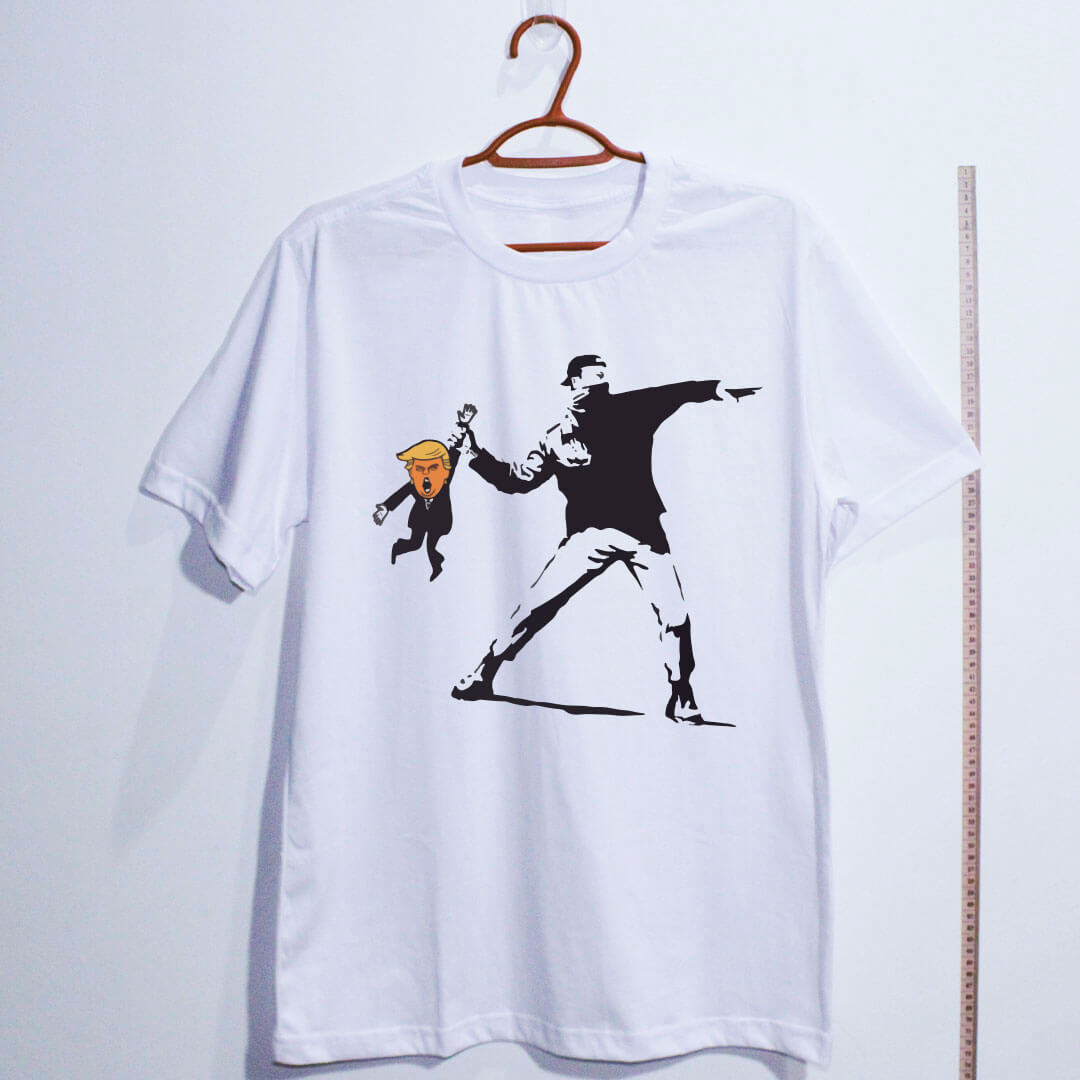 Trump, ex-presidente dos EUA (2017–2021), é uma figura polarizadora e um dos rostos mais reconhecíveis da política recente, ligado ao “MAGA”. A estampa pega isso e devolve em forma de caricatura e deboche.