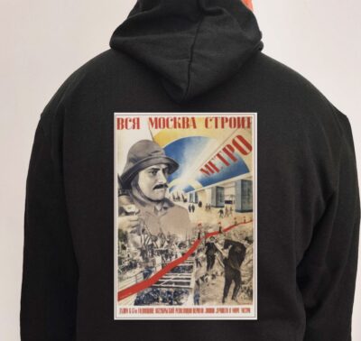 Gustav Klutsis (1895–1938) foi um dos maiores nomes do fotomontage construtivista soviético. Letão de nascimento, tornou-se artista gráfico do Partido Comunista, criando imagens que definiram a estética revolucionária da URSS. Em 1933, produziu "Erguei a bandeira de Marx, Engels, Lênin e Stálin", obra que sintetizava o culto aos fundadores do marxismo-leninismo num momento de plena consolidação do poder soviético. A ironia cruel do destino: Klutsis foi preso em 1937 durante as Grandes Purgas stalinistas e fuzilado em 1938 — pelo mesmo regime que ele ajudou a glorificar com talento e convicção. Sua arte sobreviveu ao autoritarismo que o destruiu. Nesse moletom, a referência aquece e posiciona. Moletom com capuz, bolso canguru e tecido confortável.