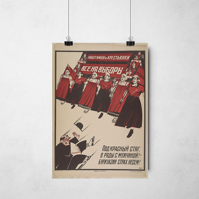 Titulo: Работницы и крестьянки, все на выборы: Под красный стяг, в ряды с мужчиной! - буржуазии страх несем!