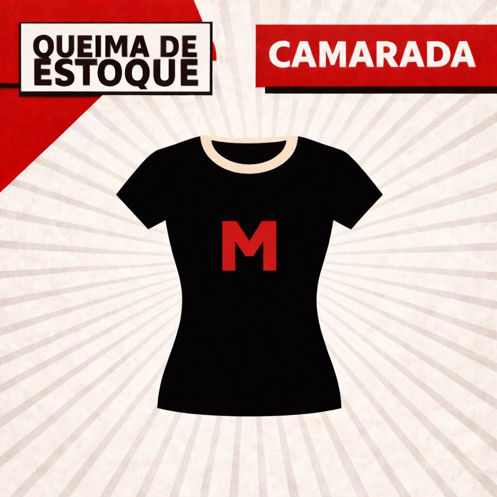 Camiseta de algodão com estampa Queima de Estoque Camarada – Baby Look – M. Tecido macio.